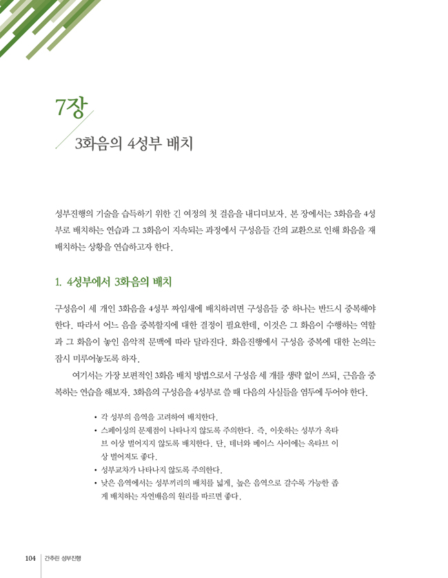 À½µéÀÌ Â¥¿©°¡´Â ¹æ½ÄÀ» °øºÎÇϴ ȼºÇп¡¼ ¼ººÎÁøÇàÀº ¹®¹ý°ú °°´Ù. ȼºÇÐÀÌ À½¾Ç ÀÛǰÀ» ±¸¼ºÇϰí ÀÌÇØÇÏ´Â ´É·ÂÀÇ ±â¹ÝÀÌ µÈ´Ù´Â Á¡¿¡¼ ¼ººÎÁøÇàÀÇ ¿ø¸®´Â ÀÛ°î°ú ¿¬ÁÖ´É·Â ¹ßÀü¿¡ ÇʼöÀûÀÌ´Ù. ±×·¯³ª ¼ººÎÁøÇàÀÇ ¿ø¸®¸¦ ÀÍÈ÷´Â ÀÏÀº ±×¸® ½±Áö ¾Ê´Ù. ´Ü¼øÇÑ ÀÌÇØ¸¦ ³Ñ¾î¼ À½¾ÇÀû ¸Æ¶ô°ú »óȲ¿¡ µû¶ó ÀûÀýÈ÷ Àû¿ëÇÒ ¼ö ÀÖ¾î¾ßÇϱ⠶§¹®ÀÌ´Ù. ÀÌ Ã¥Àº ȼºÇÐÀ» óÀ½ ¹è¿ì°í ¼ººÎÁøÇà ½Ç½À¿¡ ¸· µ¹ÀÔÇÏ·Á´Â ÇнÀÀÚ¸¦ À§ÇØ ±¸¼ºµÇ¾ú´Ù. ¹«¾ùº¸´Ùµµ ȼºÇÐ ÀÔ¹® ´Ü°è¿¡¼ ÇнÀÀÚµéÀÌ ±î´Ù·Ó°Ô ´À³¢´Â ¼ººÎÁøÇà¿¡ ÃÊÁ¡À» ¸ÂÃç ±× ÇÙ½ÉÀ» ½±°í ¸íÈ®ÇÏ°Ô ¼³¸íÇÑ´Ù. µ¶ÀÚ¸¦ °í·ÁÇÑ Ã¼°èÀûÀ̰í ÇÙ½ÉÀûÀÎ ±¸¼ºÀ¸·Î ÀÌÁ¦ ¸· ȼºÇÐÀ» ¹è¿ì°íÀÚÇÏ´Â ÇнÀÀÚºÎÅÍ, ȼºÇÐÀÇ ±â¹ÝÀ» ´ÙÁö°íÀÚ ÇÏ´Â ÇнÀÀÚ±îÁö ´Ù¾çÇÑ À̵鿡°Ô À¯¿ëÇÑ Áöħ¼°¡ µÉ °ÍÀÌ´Ù.