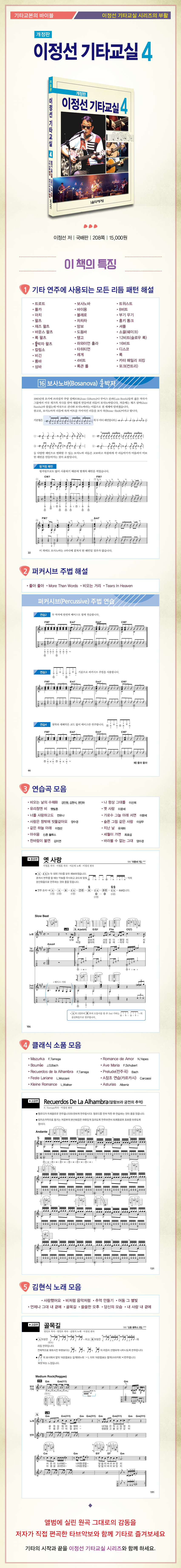 ±âŸ ¿¬ÁÖ¿¡ »ç¿ëµÇ´Â ¸ðµç ¸®µë ÆÐÅÏÀ» ÇØ¼³°ú ÇÔ²² ¾Ë±â ½±°Ô ¼ö·ÏÇÏ¿´°í ÆÛÄ¿½Ãºê ÁÖ¹ý¿¡ ´ëÇÑ ÇØ¼³°ú ¿¬½À°îÀ» ¼ö·ÏÇÏ¿´½À´Ï´Ù. ¿¬ÁÖÇϱâ ÁÁÀº Ŭ·¡½Ä ¼Òǰ°îÀ» ¼ö·ÏÇÏ¿´°í ±èÇö½Ä ³ë·¡ ¸ðÀ½À» ƯÁýÀ¸·Î ½Ç¾ú½À´Ï´Ù. ¸ðµç ¿¬½À°îÀº ¾Ù¹ü¿¡ ¼ö·ÏµÈ ¿ø°î ±×´ë·Î ÀüÁÖ, °£ÁÖ, ÈÄÁÖ, ±âŸ ¾Öµå¸³±îÁö ¾Çº¸·Î ¿Å°å°í ¸ðµç °îÀ» ÀúÀÚ°¡ Á÷Á¢ Æí°îÇÑ Å¸ºê ¾Çº¸·Î Ç¥±âÇÏ¿´½À´Ï´Ù. Ãʺ¸ÀÚµéÀ» À§ÇØ °¢ °î ¸¶´Ù »ç¿ëµÈ ±âŸ Äڵ带 ÀÚ¼¼ÇÑ ÄÚµåÇ¥ ±×¸²À¸·Î ¸¸µé¾ú½À´Ï´Ù.