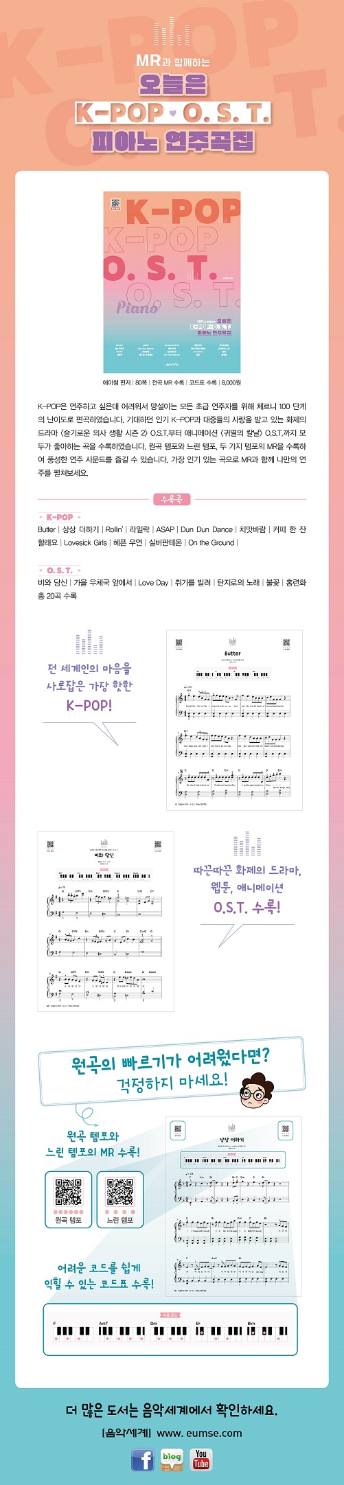 K-POPÀº Ä¡°í ½ÍÀºµ¥ ¾î·Á¿ö¼ ¸Á¼³ÀÎ ¸ðµç ÃÊ±Þ ¿¬ÁÖÀÚ¸¦ À§ÇØ ÁغñÇß½À´Ï´Ù. ±â´ëÇÏ´ø Àαâ K-POP°ú ´ëÁßµéÀÇ »ç¶ûÀ» ¹Þ°í ÀÖ´Â ÈÁ¦ÀÇ µå¶ó¸¶ <½½±â·Î¿î ÀÇ»ç »ýȰ ½ÃÁð 2> O.S.T.ºÎÅÍ ¾Ö´Ï¸ÞÀÌ¼Ç <±Í¸êÀÇ Ä®³¯> O.S.T.±îÁö ¸ðµÎ°¡ ÁÁ¾ÆÇÏ´Â °î¸¸À» ¼ö·ÏÇÏ¿´½À´Ï´Ù. ¿ø°î ÅÛÆ÷¿Í ´À¸° ÅÛÆ÷, µÎ °¡Áö ÅÛÆ÷ÀÇ MRÀ» ¼ö·ÏÇÏ¿© dz¼ºÇÑ ¿¬ÁÖ »ç¿îµå¸¦ Áñ±æ ¼ö ÀÖ½À´Ï´Ù. °¡Àå Àαâ ÀÖ´Â °îÀ¸·Î ³ª¸¸ÀÇ ¿¬ÁÖ¸¦ ÆîÃĺ¸¼¼¿ä.