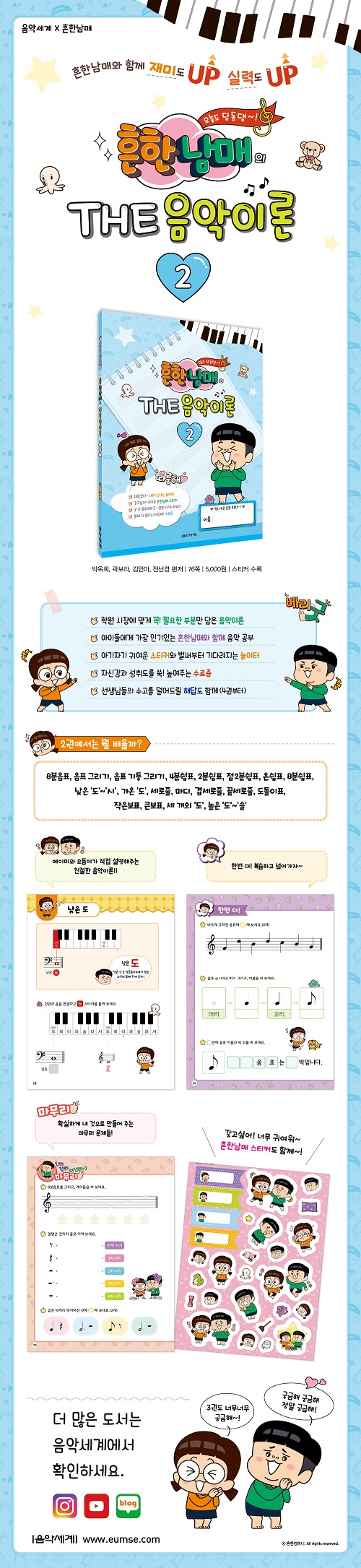 ÈçÇѳ²¸Å¿Í ÇÔ²²ÇÏ´Â ±âÃÊ À½¾ÇÀÌ·Ð ±³ÀçÀÔ´Ï´Ù. ¾ÆÀ̵éÀÌ ½±°Ô ÀÌÇØÇÒ ¼ö ÀÖµµ·Ï ÈçÇѳ²¸Å ij¸¯Å͸¦ Ȱ¿ëÇÑ Ä£ÀýÇÑ ¼³¸í°ú °¢ éÅͺ°·Î °³³äÀ» È®½ÇÈ÷ Àâ¾Æ ÁÙ º¹½À ÆäÀÌÁö¸¦ ¼ö·ÏÇßÀ¸¸ç, ¾ÆÀ̵éÀÌ ÁÁ¾ÆÇÏ´Â ±Í¿©¿î ÈçÇѳ²¸Å ½ºÆ¼Ä¿¿Í ³îÀÌ ÆäÀÌÁö·Î ´õ¿í Èï¹Ì·Ó°Ô °øºÎÇÒ ¼ö ÀÖ½À´Ï´Ù. Àü12±Ç¿¡ °ÉÄ£ ±³Àç·Î 4±ÇºÎÅÍ´Â ÇØ´äµµ ÇÔ²² ¼ö·ÏÇÏ¿´½À´Ï´Ù.