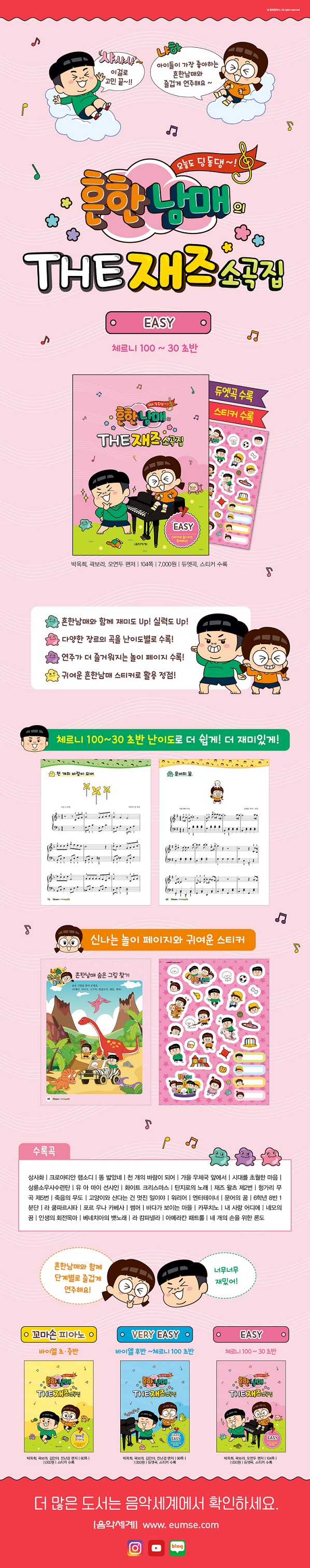 ¿äÁò ¾ÆÀ̵éÀÌ °¡Àå »ç¶ûÇÏ´Â ÈçÇѳ²¸Å¿Í ÀçÁî¼Ò°îÁýÀÌ ¸¸³µ´Ù! ¡ºÈçÇѳ²¸ÅÀÇ THE ÀçÁî¼Ò°îÁý EASY¡»´Â ü¸£´Ï 100~30 ÃÊ¹Ý ³À̵µÀÇ º´¿ë ¿¬ÁÖ°îÁýÀ¸·Î ´Ù¾çÇÑ À帣ÀÇ °îÀ» ³À̵µº°·Î ¼ö·ÏÇÏ¿´½À´Ï´Ù. ¿¬ÁÖÀÇ Áö·çÇÔÀ» ´Þ·¡ÁÙ Àç¹ÌÀÖ´Â ³îÀÌ È°µ¿ ÆäÀÌÁö¿Í ±Í¿©¿î ½ºÆ¼Ä¿, ±×¸®°í Ä£±¸¿Í ÇÔ²² ¿¬ÁÖÇÒ ¼ö Àִµ¥ µà¿§°îÀ» »ðÀÔÇÏ¿© Èï¹Ì¸¦ µ¸¿ì´Â ¿¬ÁÖ°îÁýÀÔ´Ï´Ù.