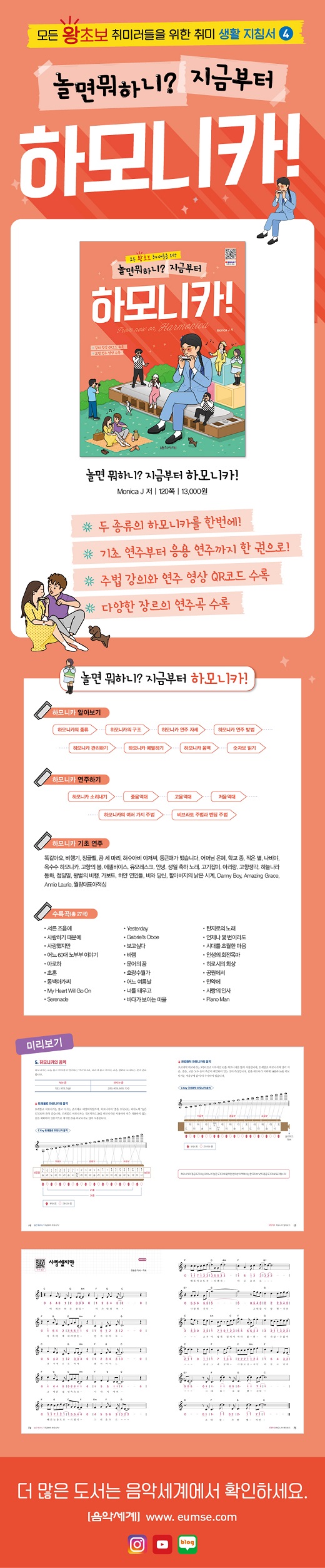Çϸð´ÏÄ« À¯Æ©¹ö Monica JÀÇ Ã¹ ¹øÂ° Ã¥À¸·Î ‘³î¸é ¹¹ÇÏ´Ï?’ ³× ¹øÂ° ½Ã¸®Áî Çϸð´ÏÄ« ±âÃÊ ±³º»ÀÔ´Ï´Ù. <³î¸é ¹¹ÇÏ´Ï? Áö±ÝºÎÅÍ Çϸð´ÏÄ«!>´Â Æ®·¹¸ô·Î Çϸð´ÏÄ«¿Í Å©·Î¸Åƽ Çϸð´ÏÄ«¸¦ ÇÑ ±ÇÀ¸·Î ¹è¿ï ¼ö ÀÖµµ·Ï ±¸¼ºÇÏ¿´½À´Ï´Ù. ¶ÇÇÑ Çϸð´ÏÄ« ±âÃÊ ¿¬ÁÖºÎÅÍ ´Ù¾çÇÑ ÁÖ¹ýÀ» Ȱ¿ëÇÑ ÀÀ¿ë ¿¬ÁÖ±îÁö Ä¿¸®Å§·³À» ±¸¼ºÇÏ¿© Çϸð´ÏÄ« ¿¬ÁÖ¸¦ ÇÑ ±ÇÀ¸·Î ¸¶½ºÅÍÇÒ ¼ö ÀÖ½À´Ï´Ù. ÁÖ¹ý°ú ¿¬ÁÖ°î ÆÄÆ®´Â °ÀÇ ¿µ»ó°ú ¸ð¹ü ¿¬ÁÖ¸¦ QRÄÚµå·Î ¼ö·ÏÇÏ¿© µ¶ÇÐÀ¸·Îµµ ÃæºÐÈ÷ Çϸð´ÏÄ«¸¦ ¹è¿ì°í ¿¬ÁÖÇÒ ¼ö ÀÖ½À´Ï´Ù.