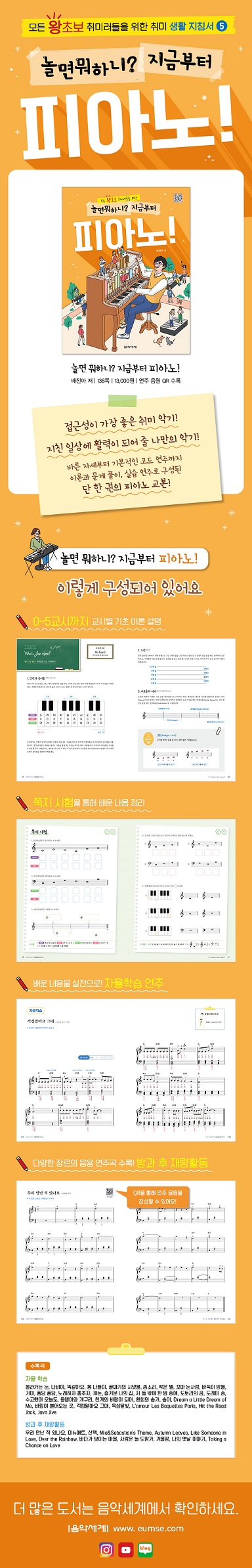 ¾î¸± Àû ´©±¸³ª ÇǾƳ븦 ¹è¿î °æÇèÀÌ ÀÖÀ» °ÍÀÔ´Ï´Ù. ¾î·ÅDzÀÌ ±â¾ïÇϰí ÀÖ´ø ¾î¸± Àû À½¾ÇÀ» ´Ù½Ã±Ý Ãß¾ïÇÏ¸ç ¹Ù»Ú°í ÁöÄ£ Çö´ë »çȸ ¸ðµÎ¿¡°Ô Ȱ·ÂÀÌ µÇ¾îÁÙ ÇÇ¾Æ³ë ±³º»ÀÔ´Ï´Ù. 0±³½ÃºÎÅÍ 5±³½Ã±îÁö °¢ ±³½Ãº°·Î ÇǾƳ븦 ¿¬ÁÖÇϱ⿡ ¾Õ¼ ±âÃÊ ÀÌ·ÐÀ» ÇнÀÇϰí, ¹®Á¦Ç®ÀÌ¿Í ÀÀ¿ë¿¬ÁÖ·Î ±¸¼ºµÇ¾î ÀÖ¾î ÇǾƳ븦 µ¶ÇÐÀ¸·Î ¹è¿ì±â¿¡ °¡Àå È¿°úÀûÀÎ ±³ÀçÀÔ´Ï´Ù. ³À̵µ¿¡ ¸ÂÃá ´Ù¾çÇÑ À帣ÀÇ °îÀ» ½¬¿î Æí°îÀ¸·Î ¼ö·ÏÇØ ¿¬ÁÖ°¡ °¡´ÉÇϸç, Ãë¹Ì »ýȰ, ¶Ç´Â Àڱ⠰è¹ßÀ» À§ÇØ ¾Ç±â ÇϳªÂë ´Ù·ïº¸°í ½ÍÀº ¼ºÀεéÀ» À§ÇØ °¡Àå Á¢±Ù¼ºÀÌ ÁÁÀº ¾Ç±âÀÎ ÇǾƳ븦 ½±°í Àç¹ÌÀÖ°Ô ¹è¿ï ¼ö ÀÖ½À´Ï´Ù.