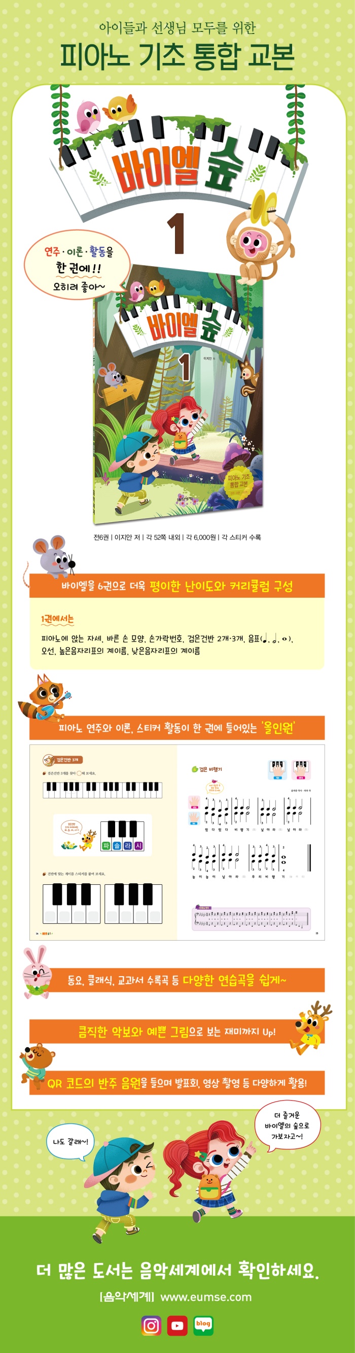 ÇǾƳ븦 óÀ½ ½ÃÀÛÇÏ´Â 6¼¼ ÀÌ»óÀÇ ÇнÀÀÚ¸¦ À§ÇÑ ±âÃÊ ÇÇ¾Æ³ë ±³º»ÀÔ´Ï´Ù. ±âÃÊ¿¡ Ãæ½ÇÇÏÁö¸¸ ´õ¿í ¿Ï¸¸ÇÑ Ä¿¸®Å§·³°ú Áøµµ¸¦ À§ÇØ ÃÑ 6±ÇÀ¸·Î ±¸¼ºÇÏ¿´½À´Ï´Ù. ÇÇ¾Æ³ë ¿¬ÁÖ »Ó¸¸ ¾Æ´Ï¶ó À̷аú ½ºÆ¼Ä¿ Ȱµ¿±îÁö ÇÑ ±ÇÀ¸·Î ³¡³¯ ¼ö ÀÖ´Â ¿ÃÀοø ±³Àç·Î, ÀÚÄ© Áö·çÇÒ ¼ö ÀÖ´Â ¹ÙÀÌ¿¤ °úÁ¤À» Èï¹Ì·Ó°Ô Á¢±ÙÇÒ ¼ö ÀÖµµ·Ï ÇÏ¿´½À´Ï´Ù. µ¿¿ä, Ŭ·¡½Ä, ±³°ú¼ ¼ö·Ï°î, ij·² µî ´Ù¾çÇÑ À帣ÀÇ ¼ö·Ï°îÀ» ½±°í Àç¹ÌÀÖ°Ô Æí°îÇÏ¿© Áö·çÇÏÁö ¾Ê°Ô ÇÏ¿´À¸¸ç, ¸Ç ¸¶Áö¸· Àå¿¡ °¢ ±ÇÀÇ º¹½À °³³äÀÇ ¿¬ÁÖ ÆäÀÌÁö¸¦ QR ÄÚµå ¹ÝÁÖ¿Í ÇÔ²² ¼ö·ÏÇØ µ¿¿µ»ó ÃÔ¿µ, ¹ßǥȸ µî ´Ù¾çÇÏ°Ô È°¿ëÇÒ ¼ö ÀÖ½À´Ï´Ù.