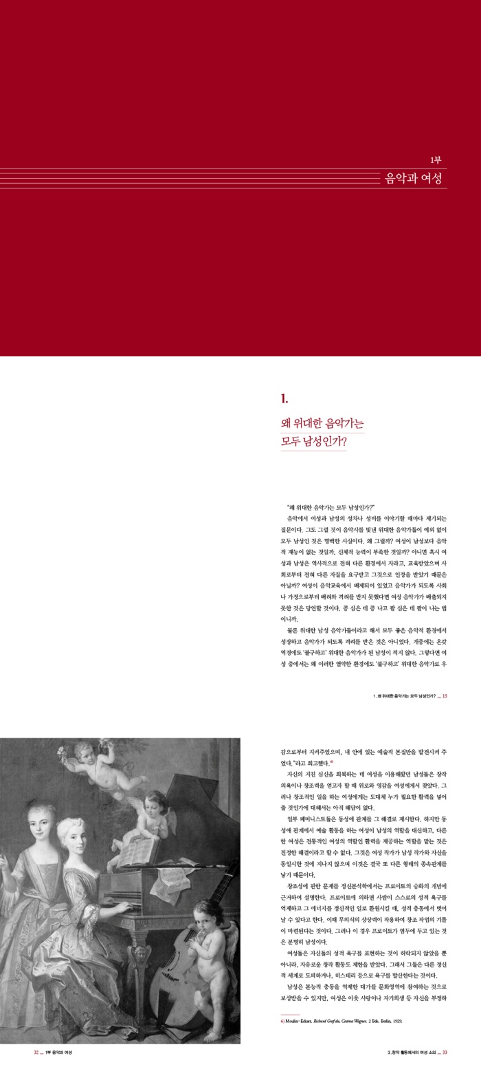 ÀÌ Ã¥Àº ‘¿Ö À§´ëÇÑ À½¾Ç°¡µéÀº ¸ðµÎ ³²¼ºÀΰ¡?’¶ó´Â Áú¹®¿¡¼ ½ÃÀ۵Ǿî ÀúÀÚ°¡ ¾î¸° ½ÃÀýºÎÅÍ °¡Áø ‘¿Ö ¿©ÀÚ¾ÆÀ̵鸸 ÇǾƳ븦 Ä¡´Â°¡?’, ‘¿Ö ¸ðµç À§´ëÇÑ À½¾Ç°¡µéÀº ³²ÀÚÀΰ¡?’¶ó´Â Àǹ®¿¡ ´ëÇÑ ´äÀ» ã¾Æ°£´Ù. ÀúÀÚ°¡ ±×µ¿¾È ¿©¼º ÄÞÇ÷º½º·ÎºÎÅÍ ÀúÀÚ°¡ ÇØ¹æµÇ´Â ±ËÀûÀ» ¼¼úÇÑ Ã¥À̶ó°í º¼ ¼ö ÀÖ´Ù. Å©°Ô <1ºÎ-À½¾Ç°ú ¿©¼º>, <2ºÎ-À½¾Ç ¼ÓÀÇ ¿©¼º>À¸·Î ³ª´µ¸ç, ÃÊÆÇÀÌ ¹ßÇàµÈÁö 20³âÀÌ Áö³ª ´ç½Ã¿Í ºñ±³ÇÏ¿© Å©°Ô º¯ÇÑ ¼¼»ó¿¡ ¸Â°Ô ´ç½ÃÀÇ ¹®Á¦ÀǽÄÀº »ì¸®°í ´Ù¼Ò °ú°ÝÇÏ°í ³¸¼³´Ù°í »ý°¢µÈ ¹®ÀåÀ» Å©°Ô ´Ùµë¾ú´Ù. Ã¥ÀÇ Ã¹¸Ó¸®¿¡¼ ´øÁø Áú¹®À» ½ÃÀÛÀ¸·Î À½¾Ç»çȸÀÇ ¿©·¯ ±¸Á¶Àû Ãø¸éÀ» °íÂûÇÏ¸ç ‘Æä¹Ì´ÏÁò À½¾ÇÀº °¡´ÉÇѰ¡?’ÀÇ °á·ÐÀ¸·Î Ä¡´ÝÀ¸¸é¼ ¸¶¹«¸®µÈ´Ù.