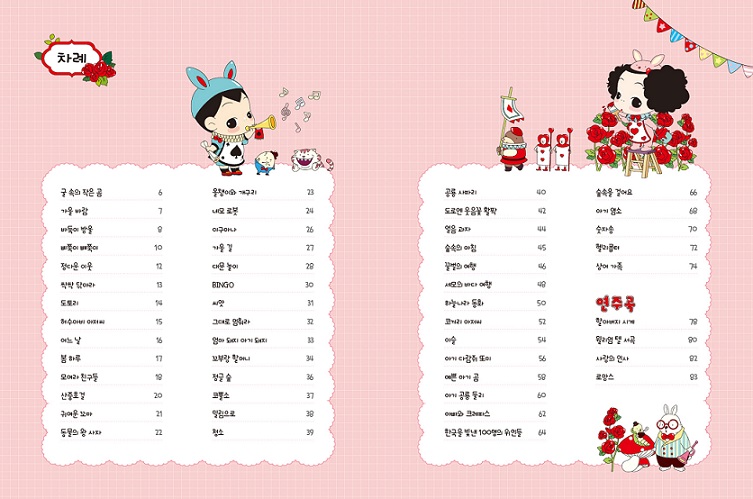 ¡º¶×ÀÌ³× µ¿¿ä°îÁý Easy¡»´Â ¹ÙÀÌ¿¤ ÁßÈĹݿ¡¼ ü¸£´Ï 100 ÃÊ¹Ý ³À̵µÀÇ ÇнÀÀÚ¸¦ À§ÇÑ º´¿ë ¿¬ÁÖ°îÁýÀÔ´Ï´Ù. ´Ü°èº°·Î ÃÑ 3±ÇÀ¸·Î ±¸¼ºµÇ¾î ÀÖÀ¸¸ç, °¡µ¶¼º ÁÁÀº Å« ¾Çº¸·Î Ä£¼÷ÇÑ µ¿¿äºÎÅÍ ÃֽŠÀα⠵¿¿ä¸¦ ½±°í Àç¹Õ°Ô ¹è¿ï ¼ö ÀÖ½À´Ï´Ù. ±Í¿°µÕÀÌ ¶×ÀÌ³× Ä³¸¯Å͸¦ Ȱ¿ëÇÑ ³îÀÌ È°µ¿ ÆäÀÌÁö·Î Àç¹Ì¸¦ ´õÇÏ¿© ¾ÆÀ̵éÀÇ Èï¹Ìµµ ³ôÀÌ°í ½Ç·Âµµ Up ½ÃŰ´Â Ȱ¿ëµµ ³ôÀº µ¿¿ä°îÁýÀÔ´Ï´Ù.