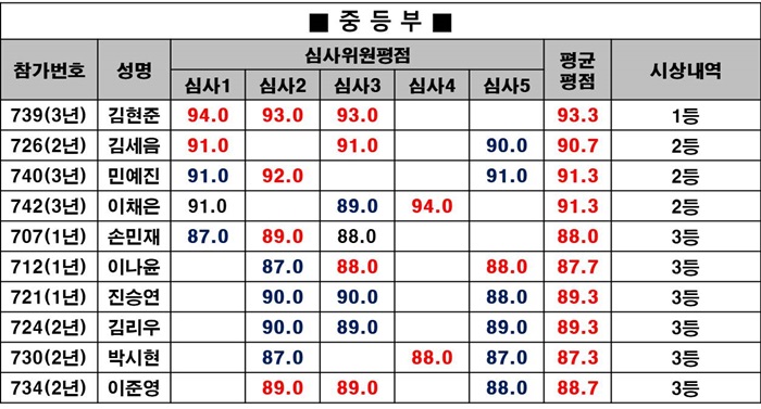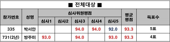* ½É»çÀ§¿ø 5¸íÀÇ Á¡¼öÁß ÃÖ°í ÃÖÀú Á¡¼ö¸¦ Á¦¿ÜÇÑ Æò±ÕÆòÁ¡¿¡ ÀÇÇØ ¼øÀ§¸¦