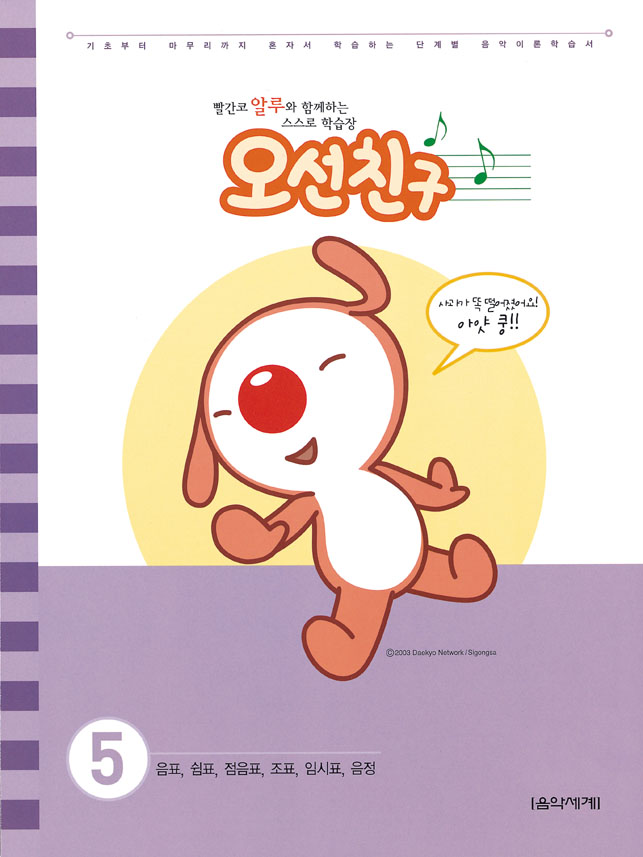 ¿À¼±Ä£±¸´Â ÇöÁ÷ ÇÇ¾Æ³ë ¼±»ý´ÔµéÀÌ Á÷Á¢ ÃâÁ¦ÇÑ ±³Àç·Î, ´Ü°èº°·Î ±¸¼ºµÇ¾ú½À´Ï´Ù. ½±°í ¾ËÂ÷°Ô ¸¸µé¾î ¾î¸°ÀÌ È¥ÀÚ¼µµ ÃæºÐÈ÷ ÇнÀÇÒ ¼ö ÀÖÀ¸¸ç, źźÇÑ ±âÃʸ¦ ½×À» ¼ö ÀÖµµ·Ï ¹®Á¦À§ÁÖ·Î ÃâÁ¦µÈ À½¾ÇÀ̷мÀÔ´Ï´Ù. ¶Ç Áß°£ Áß°£¿¡´Â ¼±»ý´ÔµéÀÌ ºÎÁ·ÇÑ ºÎºÐÀ» ¾Ë·ÁÁÙ ¼ö ÀÖ´Â °ø°£À» ¸¸µé¾î ÇнÀ¿¡ µµ¿òÀÌ µÇµµ·Ï ÇÏ¿´½À´Ï´Ù. 5´Ü°è: Á¡À½Ç¥¿Í Á¡½°Ç¥, 16ºÐÀ½Ç¥ ¹±â, #(»þÇÁ)°¡ ºÙÀº À½, ¢Ú(Ç÷§)ÀÌ ºÙÀº À½, Á¶Ç¥, ÀÓ½ÃÇ¥, À½Á¤