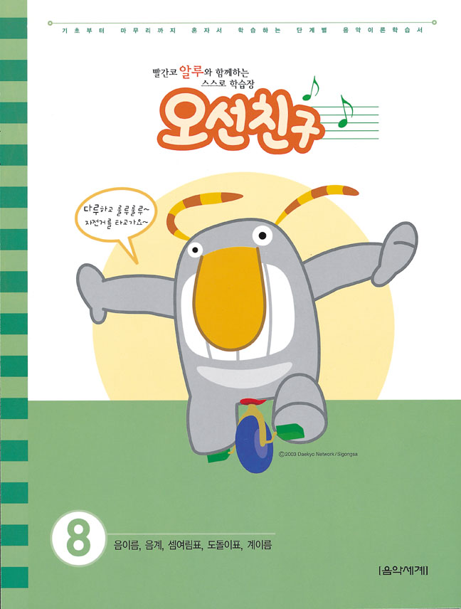¿À¼±Ä£±¸´Â ÇöÁ÷ ÇÇ¾Æ³ë ¼±»ý´ÔµéÀÌ Á÷Á¢ ÃâÁ¦ÇÑ ±³Àç·Î, ´Ü°èº°·Î ±¸¼ºµÇ¾ú½À´Ï´Ù. ½±°í ¾ËÂ÷°Ô ¸¸µé¾î ¾î¸°ÀÌ È¥ÀÚ¼µµ ÃæºÐÈ÷ ÇнÀÇÒ ¼ö ÀÖÀ¸¸ç, źźÇÑ ±âÃʸ¦ ½×À» ¼ö ÀÖµµ·Ï ¹®Á¦À§ÁÖ·Î ÃâÁ¦µÈ À½¾ÇÀ̷мÀÔ´Ï´Ù. ¶Ç Áß°£ Áß°£¿¡´Â ¼±»ý´ÔµéÀÌ ºÎÁ·ÇÑ ºÎºÐÀ» ¾Ë·ÁÁÙ ¼ö ÀÖ´Â °ø°£À» ¸¸µé¾î ÇнÀ¿¡ µµ¿òÀÌ µÇµµ·Ï ÇÏ¿´½À´Ï´Ù. 8´Ü°è: ÀåÀ½°è, À½°è(´Ù, »ç, ¹Ù ÀåÁ¶), ¼À¿©¸²Ç¥, D.C.(´Ù Ä«Æ÷)¿Í Fine(Çdz×), D.S.(´Þ ¼¼´¢)¿Í (¼¼´¢), ³ôÀºÀ½ÀÚ¸®Ç¥ ¾Æ·¡ µ¡ÁÙ ÆÄ∼¶ó À½ ÀÍÈ÷±â