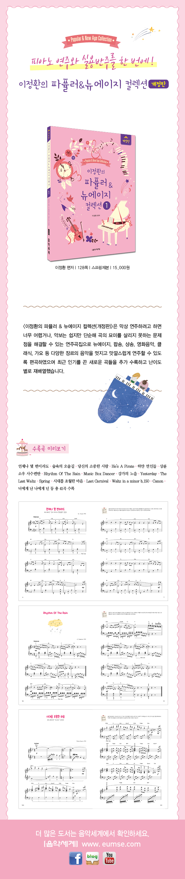 <ÀÌÁ¤È¯ÀÇ ÆÄǽ·¯ & ´º¿¡ÀÌÁö Ä÷º¼Ç(°³Á¤ÆÇ)>Àº ¸·»ó ¿¬ÁÖÇÏ·Á°í ÇÏ¸é ³Ê¹« ¾î·Æ°Å³ª, ¾Çº¸´Â ½±Áö¸¸ ´Ü¼øÇØ °îÀÇ ¹¦¹Ì¸¦ »ì¸®Áö ¸øÇÏ´Â ¹®Á¦Á¡À» ÇØ°áÇÒ ¼ö ÀÖ´Â ¿¬ÁÖ°îÁýÀ¸·Î ´º¿¡ÀÌÁö, ÆË¼Û, ¼§¼Û, ¿µÈÀ½¾Ç, Ŭ·¡½Ä, °¡¿ä µî ´Ù¾çÇÑ À帣ÀÇ À½¾ÇÀ» ¸ÚÁö°í ¸À±ò½º·´°Ô ¿¬ÁÖÇÒ ¼ö ÀÖµµ·Ï Æí°îÇÏ¿´À¸¸ç ÃÖ±Ù Àα⸦ ²ö »õ·Î¿î °îµéÀ» Ãß°¡ ¼ö·ÏÇÏ°í ³À̵µ º°·Î Àç¹è¿Çß½À´Ï´Ù.