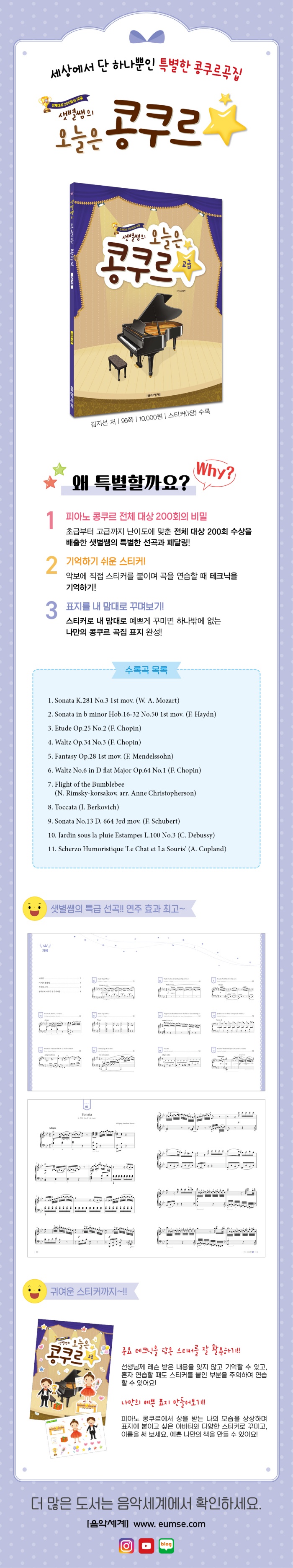 ‘ÇǾƳë ÄáÄí¸£ Àüü ´ë»ó 200ȸÀÇ ºñ¹Ð’ÀÇ ÀúÀÚ »ûº°½Ü ±èÁö¼± ¿øÀåÀÇ ÇǾƳë ÄáÄí¸£ °îÁýÀÔ´Ï´Ù. Áß±Þ, °í±Þ ÃÑ 3±ÇÀ¸·Î ÀûÀýÇÏ°Ô ³À̵µº°·Î ¹è¿ÇÏ¿´½À´Ï´Ù. ¿¬ÁÖ°îÁýÀ¸·Î¼ ¿¬ÁÖ¿¡¸¸ ÃÊÁ¡À» ¸ÂÃ߱⠺¸´Ù ³»°¡ ¿¬ÁÖÇÏ´Â ÀÌ °î¿¡ ´ëÇØ Á¤È®È÷ ¾Ë°í ¿¬ÁÖÇÒ ¼ö ÀÖµµ·Ï ÀÌ °îÀÇ Æ¯Â¡À» µû¶ó ¾µ ¼ö ÀÖµµ·Ï ±¸¼ºÇÏ¿´½À´Ï´Ù. ¶ÇÇÑ ³»Áö¿¡´Â Áß¿ä Å×Å©´ÐÀ» ´ãÀº ½ºÆ¼Ä¿¸¦ Ȱ¿ëÇÒ ¼ö ÀÖµµ·Ï ÇÏ¿© ¼±»ý´Ô²² ·¹½¼ ¹ÞÀº ³»¿ëÀ» ÀØÁö ¾Ê°í ±â¾ïÇØ È¥ÀÚ ¿¬½ÀÇÒ ¶§µµ ÁÖÀÇÇÏ¿© ¿¬½ÀÇÒ ¼ö ÀÖ½À´Ï´Ù. ÇǾƳë ÄáÄí¸£¿¡¼ »óÀ» ¹Þ´Â ³ªÀÇ ¸ð½ÀÀ» »ó»óÇÏ¸ç ³ª¸¸ÀÇ Ç¥Áö¸¦ ¿¹»Ú°Ô ²Ù¹Ð ¼ö ÀÖ°Ô ³»°¡ ºÙÀÌ°í ½ÍÀº ¾Æ¹ÙŸ¿Í ´Ù¾çÇÑ ½ºÆ¼Ä¿·Î ²Ù¹Ì°í À̸§À» ¾µ ¼ö ÀÖ¾î ¾ÆÀ̵éÀÇ Èï¹Ì¸¦ À¯¹ßÇÏ¿´½À´Ï´Ù. Æ÷ÇÚÁî °îÀ» ¼ö·ÏÇÏ¿© ¾Ó»óºíÀÇ Áñ°Å¿òµµ ´À³¥ ¼ö ÀÖ½À´Ï´Ù.