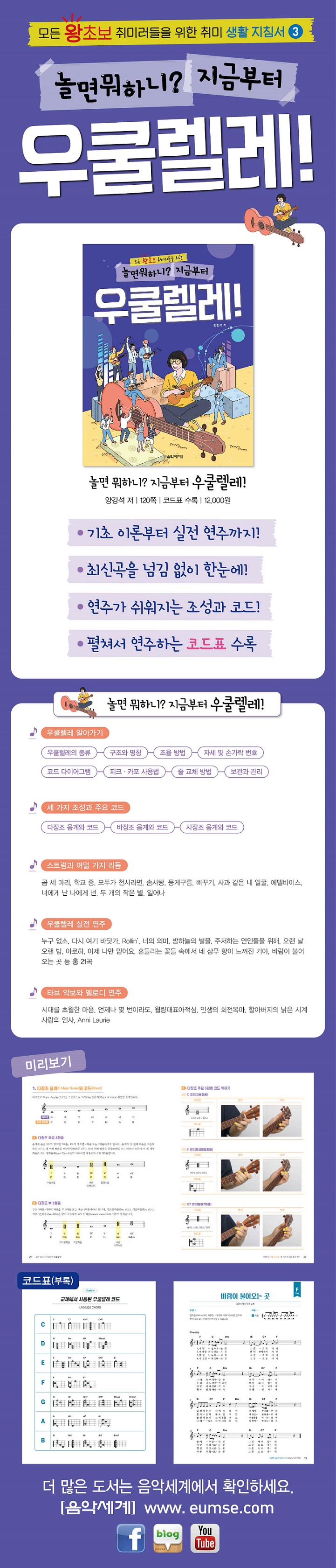 '³î¸é ¹¹ÇÏ´Ï?' ¼¼ ¹øÂ° ½Ã¸®Áî ¿ìÄð·¼·¹ ±âÃÊ ±³º»ÀÔ´Ï´Ù. 1ÀÎ 1¾Ç±â ½Ã´ë¸¦ ¸ÂÀÌÇØ Ãë¹Ì·Î ¾Ç±â ÇϳªÂë ¹è¿ì±â¸¦ Èñ¸ÁÇÏ´Â ¼ºÀÎ Ãʺ¸·ÀÔ¹®ÀÚ¸¦ ´ë»óÀ¸·Î È¥ÀÚ¼µµ ÃæºÐÈ÷ ¿ìÄð·¼·¹¸¦ ¹è¿ì°í ¿¬ÁÖÇÒ ¼ö ÀÖµµ·Ï ±âÃʺÎÅÍ ½ÇÀü ¿¬ÁÖ±îÁö Ä¿¸®Å§·³À» ±¸¼ºÇÏ¿´½À´Ï´Ù. ´Ù¾çÇÑ À帣ÀÇ Ãֽа¡¿ä¸¦ ¿¬ÁÖÇϱ⠽¬¿î ¼¼ °¡Áö Á¶¼º°ú ¿îÁö°¡ ½¬¿î ÄÚµå·Î ¼ö·ÏÇÏ¿´°í, ÇÑ À常 ÆîÄ¡¸é ¸ðµç °îÀÇ ¿¬ÁÖ°¡ °¡´ÉÇÑ Æîħ ÄÚµåÇ¥¸¦ ¼ö·ÏÇÏ¿© ¿¬ÁÖ ÆíÀǼºµµ ³ô¿´½À´Ï´Ù.