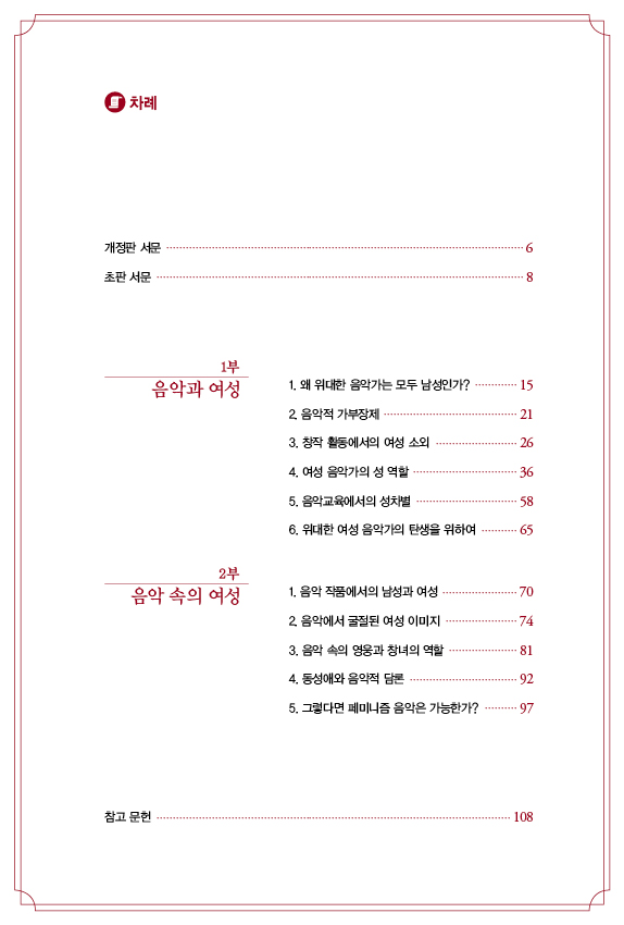 ÀÌ Ã¥Àº ‘¿Ö À§´ëÇÑ À½¾Ç°¡µéÀº ¸ðµÎ ³²¼ºÀΰ¡?’¶ó´Â Áú¹®¿¡¼ ½ÃÀ۵Ǿî ÀúÀÚ°¡ ¾î¸° ½ÃÀýºÎÅÍ °¡Áø ‘¿Ö ¿©ÀÚ¾ÆÀ̵鸸 ÇǾƳ븦 Ä¡´Â°¡?’, ‘¿Ö ¸ðµç À§´ëÇÑ À½¾Ç°¡µéÀº ³²ÀÚÀΰ¡?’¶ó´Â Àǹ®¿¡ ´ëÇÑ ´äÀ» ã¾Æ°£´Ù. ÀúÀÚ°¡ ±×µ¿¾È ¿©¼º ÄÞÇ÷º½º·ÎºÎÅÍ ÀúÀÚ°¡ ÇØ¹æµÇ´Â ±ËÀûÀ» ¼¼úÇÑ Ã¥À̶ó°í º¼ ¼ö ÀÖ´Ù. Å©°Ô <1ºÎ-À½¾Ç°ú ¿©¼º>, <2ºÎ-À½¾Ç ¼ÓÀÇ ¿©¼º>À¸·Î ³ª´µ¸ç, ÃÊÆÇÀÌ ¹ßÇàµÈÁö 20³âÀÌ Áö³ª ´ç½Ã¿Í ºñ±³ÇÏ¿© Å©°Ô º¯ÇÑ ¼¼»ó¿¡ ¸Â°Ô ´ç½ÃÀÇ ¹®Á¦ÀǽÄÀº »ì¸®°í ´Ù¼Ò °ú°ÝÇÏ°í ³¸¼³´Ù°í »ý°¢µÈ ¹®ÀåÀ» Å©°Ô ´Ùµë¾ú´Ù. Ã¥ÀÇ Ã¹¸Ó¸®¿¡¼ ´øÁø Áú¹®À» ½ÃÀÛÀ¸·Î À½¾Ç»çȸÀÇ ¿©·¯ ±¸Á¶Àû Ãø¸éÀ» °íÂûÇÏ¸ç ‘Æä¹Ì´ÏÁò À½¾ÇÀº °¡´ÉÇѰ¡?’ÀÇ °á·ÐÀ¸·Î Ä¡´ÝÀ¸¸é¼ ¸¶¹«¸®µÈ´Ù.