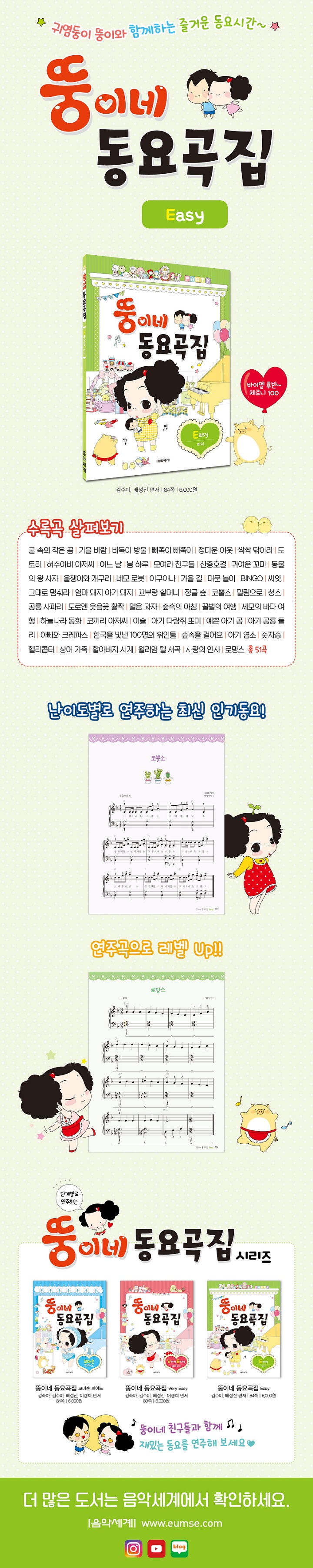 ¡º¶×ÀÌ³× µ¿¿ä°îÁý Easy¡»´Â ¹ÙÀÌ¿¤ ÁßÈĹݿ¡¼ ü¸£´Ï 100 ÃÊ¹Ý ³À̵µÀÇ ÇнÀÀÚ¸¦ À§ÇÑ º´¿ë ¿¬ÁÖ°îÁýÀÔ´Ï´Ù. ´Ü°èº°·Î ÃÑ 3±ÇÀ¸·Î ±¸¼ºµÇ¾î ÀÖÀ¸¸ç, °¡µ¶¼º ÁÁÀº Å« ¾Çº¸·Î Ä£¼÷ÇÑ µ¿¿äºÎÅÍ ÃֽŠÀα⠵¿¿ä¸¦ ½±°í Àç¹Õ°Ô ¹è¿ï ¼ö ÀÖ½À´Ï´Ù. ±Í¿°µÕÀÌ ¶×ÀÌ³× Ä³¸¯Å͸¦ Ȱ¿ëÇÑ ³îÀÌ È°µ¿ ÆäÀÌÁö·Î Àç¹Ì¸¦ ´õÇÏ¿© ¾ÆÀ̵éÀÇ Èï¹Ìµµ ³ôÀÌ°í ½Ç·Âµµ Up ½ÃŰ´Â Ȱ¿ëµµ ³ôÀº µ¿¿ä°îÁýÀÔ´Ï´Ù.