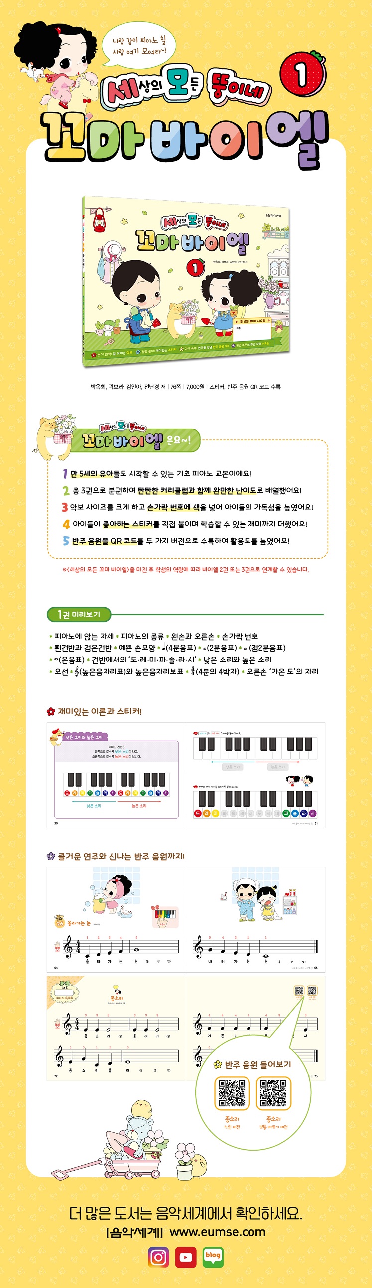 ¸¸ 5¼¼ À¯¾ÆºÎÅÍ ½ÃÀÛÇÒ ¼ö ÀÖ´Â ±âÃÊ ÇÇ¾Æ³ë ±³º»ÀÔ´Ï´Ù. ÃÑ 3±ÇÀ¸·Î ºÐ±ÇÇÏ¿© 1±ÇÀº ¿À¸¥¼Õ, 2±ÇÀº ¿Þ¼Õ°ú ¿À¸¥¼Õ, 3±ÇÀº ¾ç¼ÕÀ¸·Î ±¸¼ºÇØ ³À̵µ¸¦ ¿Ï¸¸ÇÏ°Ô Çϰí, °¡·Î ÆÇÇüÀ¸·Î ±¸¼ºÇÏ¿© ¾Çº¸ »çÀÌÁ Å©°Ô Ű¿ö °¡µ¶¼ºÀ» ³ô¿´½À´Ï´Ù. ±Í¿©¿î ¶×ÀÌ Ä³¸¯ÅÍ¿Í ÇÔ²² ¾ÆÀ̵éÀÌ ÁÁ¾ÆÇÏ´Â ½ºÆ¼Ä¿¸¦ ¼ö·ÏÇÏ¿© Á÷Á¢ ºÙÀ̸ç ÇнÀÇϰí, ¹ÝÁÖ À½¿ø QR Äڵ带 ¼ö·ÏÇÏ¿© ¼±»ý´Ô, ÇкθðÀÇ È°¿ëµµ¸¦ ³ô¿´½À´Ï´Ù.