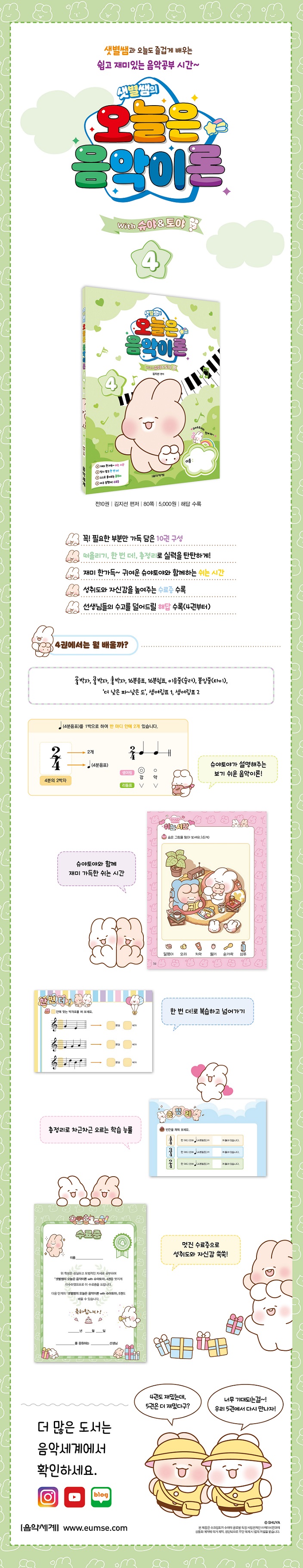 <»ûº°½ÜÀÇ ¿À´ÃÀº À½¾ÇÀÌ·Ð 4 With ½´¾ßÅä¾ß>´Â ÃÑ 10±ÇÀ¸·Î ºÐ±ÇÇÏ¿© À½¾ÇÀÌ·ÐÀ» ü°èÀûÀ¸·Î ¹è¿ï ¼ö ÀÖ½À´Ï´Ù. ´Ù¾çÇÑ ¹®Á¦ À¯Çü°ú °¢ ±Ç¸¶´Ù º¹½À, ÃÑÁ¤¸® ´Ü¿øÀ» ³Ö¾î ³õÄ¡´Â ³»¿ë¾øÀÌ ²Ä²ÄÇÏ°Ô ÇнÀÇÒ ¼ö ÀÖµµ·Ï ±¸¼ºÇÏ¿´½À´Ï´Ù. ¾Æ±âÀÚ±âÇÑ ½´¾ßÅä¾ß ij¸¯ÅͰ¡ µé¾î°£ Àç¹ÌÀÖ´Â ³îÀÌ ÆäÀÌÁö¿Í ½ºÆ¼Ä¿·Î Èï¹Ìµµ ÇÔ²² Àâ¾Ò½À´Ï´Ù.