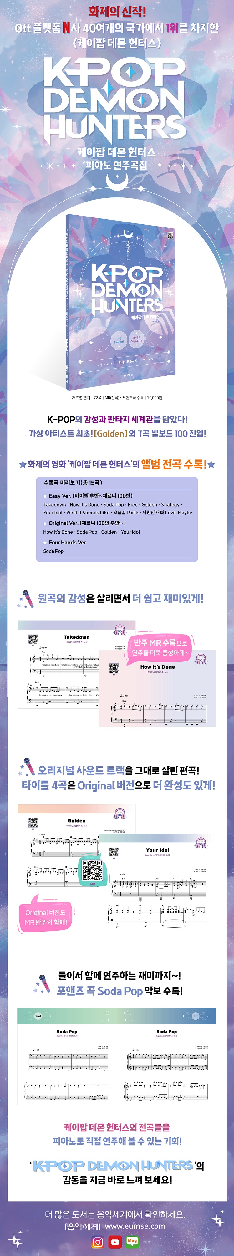 ¡´ÄÉÀÌÆË µ¥¸ó ÇåÅͽº ÇÇ¾Æ³ë ¿¬ÁÖ°îÁý¡µÀº K-PopÀ» ¼ÒÀç·Î Á¦ÀÛµÈ ¾Ö´Ï¸ÞÀÌ¼Ç ¿µÈ ‘ÄÉÀÌÆË µ¥¸ó ÇåÅͽº’ÀÇ O.S.T. ¾Ù¹ü Àü°îÀÌ Æ÷ÇÔµÈ ÇÇ¾Æ³ë ¿¬ÁÖ°îÁýÀÔ´Ï´Ù. ¹ÙÀÌ¿¤ ÈĹݺÎÅÍ Ã¼¸£´Ï 100¹ø Á¤µµÀÇ ³À̵µÀÎ Easy ¹öÀüÀ¸·Î ½±°í Àç¹ÌÀÖ°Ô ¿¬ÁÖÇÒ ¼ö ÀÖÀ¸¸ç, ¹ÝÁÖ À½¿ø ¼ö·ÏÀ¸·Î º¸´Ù Àç¹ÌÀÖ°í ´Ù¾çÇÏ°Ô Áñ±æ ¼ö ÀÖ½À´Ï´Ù. ŸÀÌÆ² 4°îÀº ¿ø°îÀÇ ¿¡³ÊÁö¸¦ ´ã¾Æ³½ Original ¹öÀüÀ¸·Î ³À̵µ ÀÖ°Ô ±¸¼ºµÇ¾î º¸´Ù dzºÎÇÑ ¿¬ÁÖ¸¦ °æÇèÇÒ ¼ö ÀÖ½À´Ï´Ù. ¶ÇÇÑ Æ÷ÇÚÁî°îÀ» ¼ö·ÏÇÏ¿© Ä£±¸ ¶Ç´Â ¼±»ý´Ô°ú ÇÔ²² ¿¬ÁÖÇÏ´Â Àç¹Ìµµ ÇÔ²² Àâ¾Ò½À´Ï´Ù.