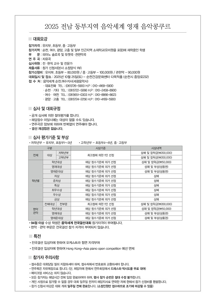 2025³â Àü³²µ¿ºÎÁö¿ª ¿µÀç À½¾Ç °æ¿¬´ëȸ