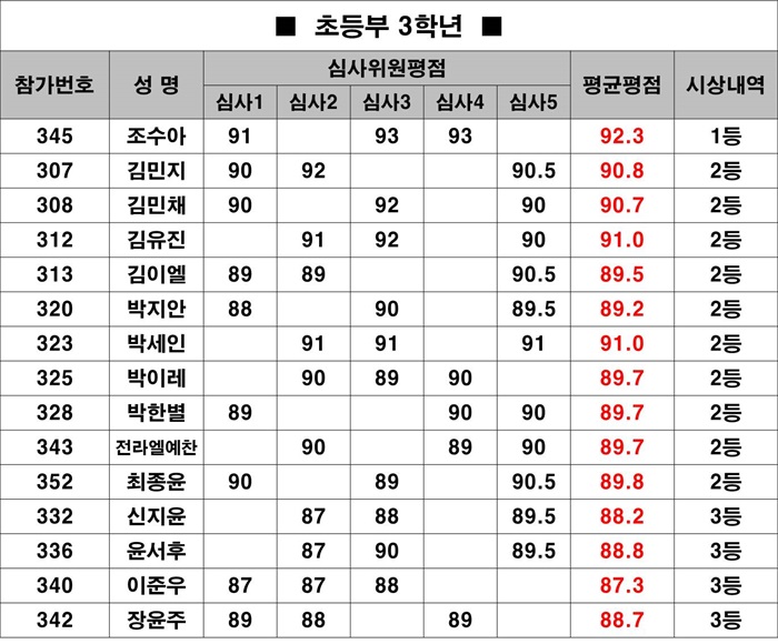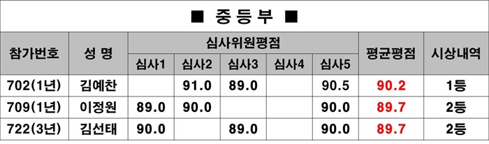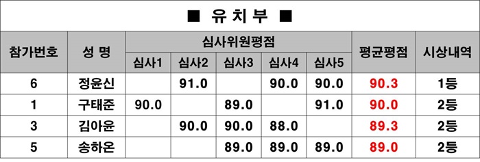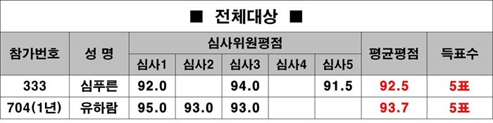 * ½É»çÀ§¿ø 5¸íÀÇ Á¡¼öÁß ÃÖ°í ÃÖÀú Á¡¼ö¸¦ Á¦¿ÜÇÑ Æò±ÕÆòÁ¡¿¡ ÀÇÇØ ¼øÀ§¸¦