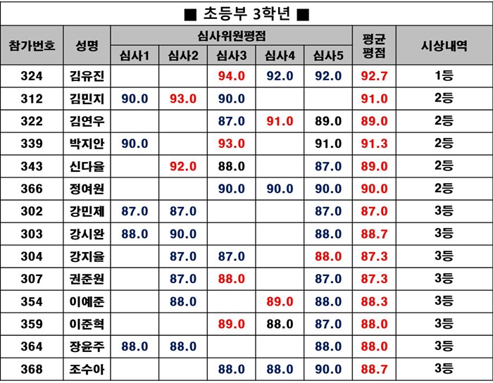 * ½É»çÀ§¿ø 5¸íÀÇ Á¡¼öÁß ÃÖ°í ÃÖÀú Á¡¼ö¸¦ Á¦¿ÜÇÑ Æò±ÕÆòÁ¡¿¡ ÀÇÇØ ¼øÀ§¸¦